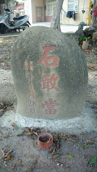 戀戀雲林溪打開斗六門斗六市虎溪里崙仔石敢當田野調查。監看雲林溪整治現場是否有重要文物出現?沒想到在雲林溪旁看到一棵老榕樹下一塊石敢當是民國九十八年打製的新品,由當地雲林溪地形研判,這裡應該時常淹水,訪問居民之後,才知道幾乎每年下大雨後這裡都會淹水,石敢當是來擋水患和避邪的作用,依我研判應該有老的石敢當才對,就在老樹下發現老的石敢當被埋在地下,村民說是因為老石敢當慘破了,所以才重新刻一塊新的石敢當祭拜,由此證明一般百姓對文化資產文物保護應該是沒有概念?舊的文物有歷史背景應該保護才對,現代重新刻的新東西應該是參考比對的功能而已。所以對社會公民的教育是很重要。