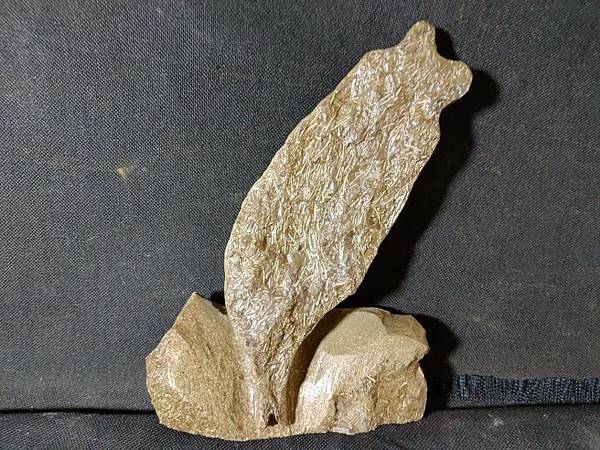 臺灣化石欣賞。天佑台灣風調雨順,玩石頭的雅士想像力特別強,可以玩原石也可以雕刻成藝術品稱為藝石,因此玩賞石頭喜歡就好,該石是象牙貝化石,産地:嘉義縣觸口牛埔,石質堅硬,藝術家雕刻成台灣很有創意。銘:天佑台灣。