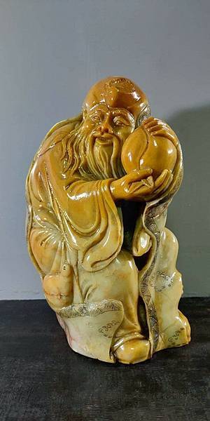 天然的雅石與壽山石雕欣賞。兩顆美石擺在一起,領悟了壽翁的形態,萬壽無疆。夀比南山。福如東海。(攝於台灣雅石文史工作室)
